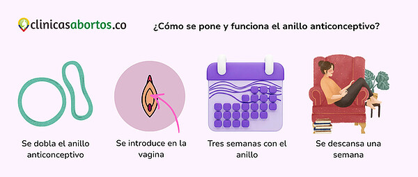 Se inserta en la vagina con los dedos y se coloca en una posición cómoda. Se mantiene por 3 semanas seguidas y luego se retira por 7 días. Después de los 7 días de descanso se inserta un anillo nuevo para continuar con el ciclo.